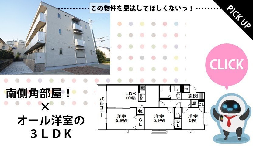 ![]() 【山本エリア】 NEW マーベラス撰花園(1LDK)募集開始 NEW オール洋室!ガーデンヒル宝塚(2LDK)募集開始 DOWN サンルームタイプ!プレジール山本(1LDK)賃料&礼金下がりました! 【中山寺エリア】 NEW ネット接続無料!セジュール中山Ⅱ(2LDK)募集開始 【売布エリア】 NEW 山手で見晴らしバッチリ!View Terrace売布Ⅱ(2LDK)募集開始 【伊丹市鴻池エリア】 NEW 2階角部屋!サニーハイツ(3LDK)募集開始 終了 サンヴィレッジ21(伊丹市荻野西)は賃貸募集終了しました 終了 サンセール宝塚(宝塚市安倉南)は賃貸募集終了しました 終了 アルバ売布(宝塚市中山寺)は賃貸募集終了しました 終了 レーベンスアルト(伊丹市西野)は賃貸募集終了しました 今年も1年たくさんのお問い合わせをくださり誠にありがとうございました。 すみれハウジングスタッフ一同